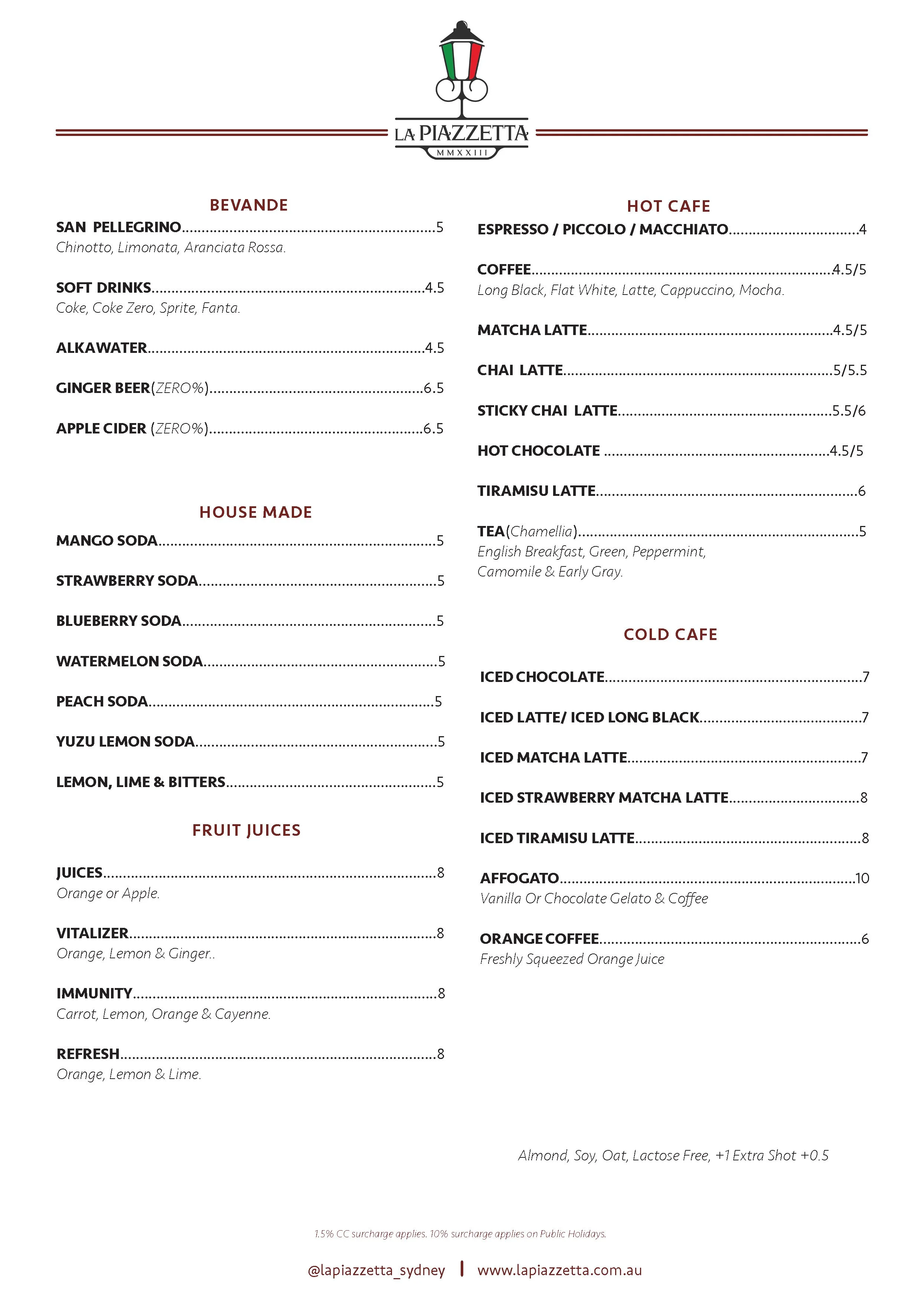 Thank you for subscribing to La Piazzetta! You’ll be the first to receive our exclusive offers and deals.